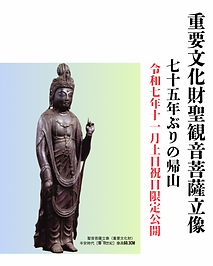 昭和25年(1950年)に国の重要文化財に指定され、長らく奈良国立博物館に寄託・展示されておりました当山の「聖観音菩薩立像」が、このたび75年ぶりに本山寺へ帰ってまいります。